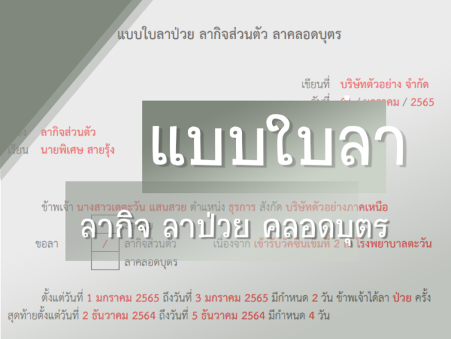 แบบฟอร์มใบลากิจ ลาป่วย ลาคลอดลูก.DOC | มีตัวอย่าง พร้อมไฟล์ดาวน์โหลด [WORD] แบบฟอร์มราชการBy Phangมกราคม 4, 2022Leave a commentสิทธิประโยชน์การลาของ“พนักงานเทศบาล” 1. การ…