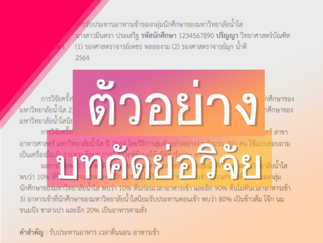 แบบฟอร์มบทคัดย่องานวิจัย.DOC | มีตัวอย่าง พร้อมไฟล์ดาวน์โหลด [WORD] แบบฟอร์มราชการBy Phangมกราคม 7, 2022Leave a commentบทคัดย่องานวิจัยคืออะไร? บทคัดย่องานวิจัย เป็นส่วนที่เข…