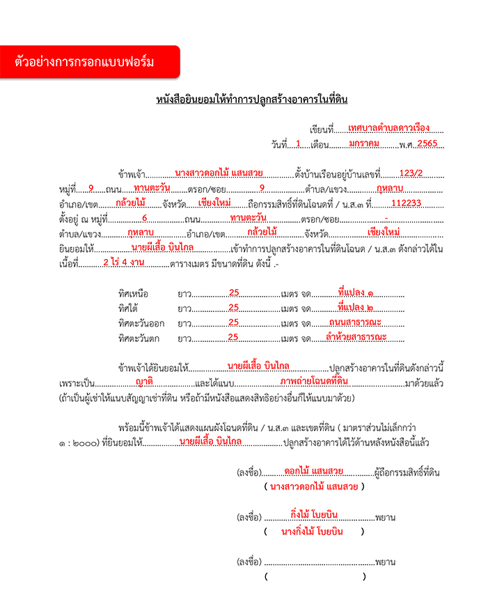 แบบฟอร์มหนังสือยินยอมให้ทำการปลูกสร้างอาคารในที่ดิน หรือ Construct Buildings On The Land สามารถดาวน์โหลดแบบไฟล์ word แล้วนำไปแก้ไข เพิ่ม ลบข้อความได้เลย เพื่อให้ครอบคลุมตามความต้องการของแต่ละคน