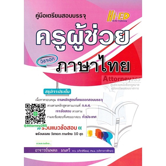 - คู่มือเตรียมสอบบรรจุ ครูผู้ช่วย วิชาเอกภาษาไทย สรุปเจาะประเด็น รวมแนวข้อสอบ