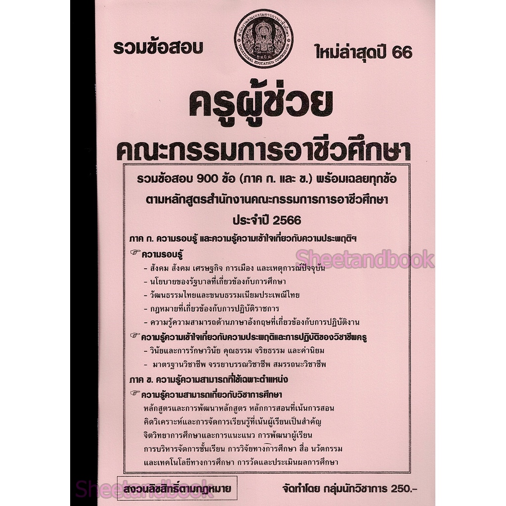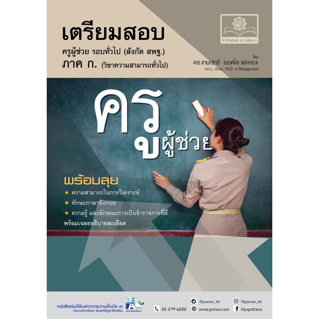 - เตรียมพร้อมเพื่อการสอบ เข้ารับราชการตำแหน่งครูผู้ช่วยสังกัด สพฐ. ทั้งในรอบทั่วไปและรอบกรณีพิเศษ สรุปทุกเนื้อหาสำคัญ และเก็งข้อสอบอย่างตรงจุด สรุปเนื้อหาสอบครูผู้ช่วยแบบตรงประเด็น เก็งข้อสอบอย่างตรงจุด