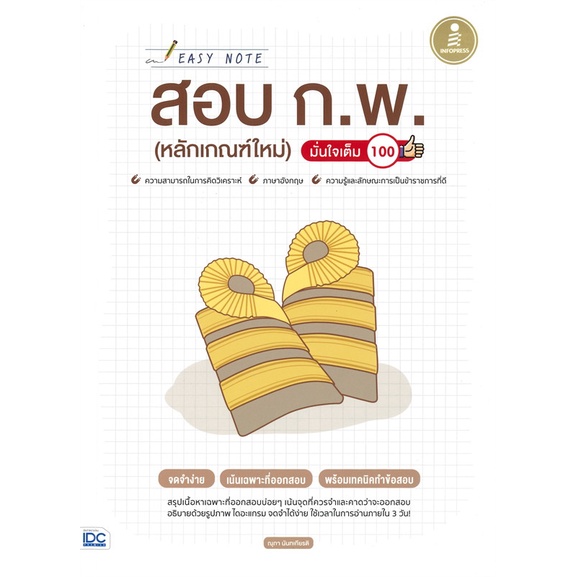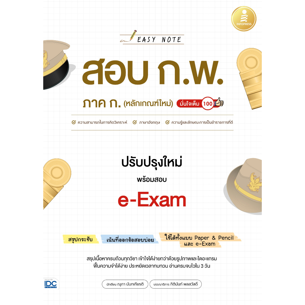- ครอบคลุมเนื้อหาการสอบ ทั้งแบบ Paper & Pencil และแบบ e-Exam แนวข้อสอบครบทุกวิชา รวมกว่า 600 ข้อ พร้อมเฉลยและคำอธิบายอย่างละเอียดทุกข้อ และเน้นแนวข้อสอบวิชาความรู้และลักษณะการเป็นข้าราชการที่ดีที่คาดว่าจะออกสอบ