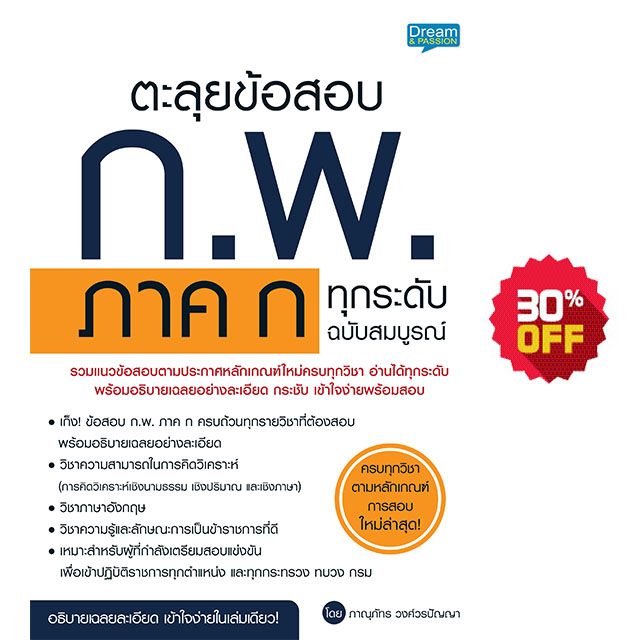 - รวบรวมแนวข้อสอบจริงสำหรับเตรียมสอบ ก.พ. (ภาค ก.) ตามหลักเกณฑ์ใหม่ สังเคราะห์จากข้อสอบจริงในปัจจุบัน พร้อมเฉลยอธิบายอย่างละเอียด เพื่อให้ผู้เข้าสอบได้ทดลองฝึกฝน และทำความเข้าใจก่อนลงสนามจริง