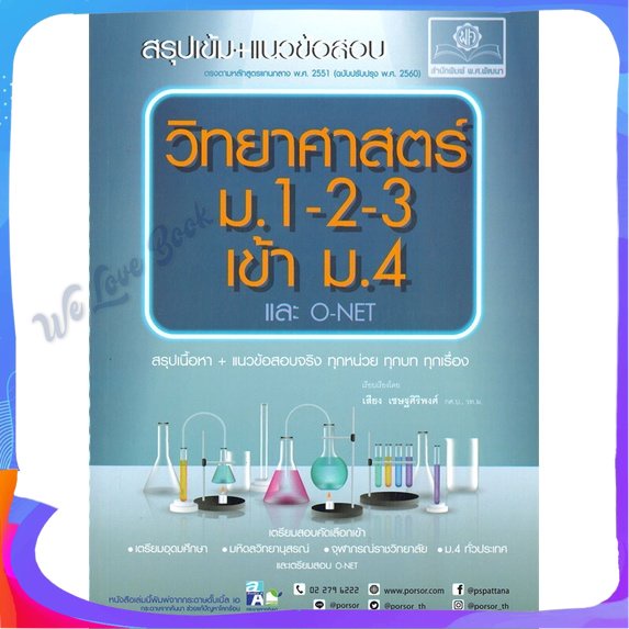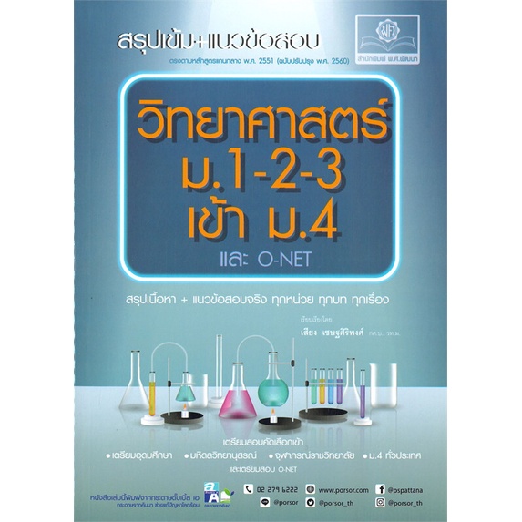 - สรุปเข้ม แนวข้อสอบ วิทยาศาสตร์ ม. 1-2-3 เข้า ม.4 (และ O-Net) โดย พ.ศ.พัฒนา โดย เสียง เชษฐศิริพงศ์