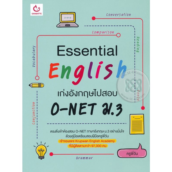 - เตรียมพร้อมตะลุยโจทย์แนวข้อสอบ O-NET สำหรับนักเรียนชั้น ม.3 ในสอบเข้า ม.4 ในโรงเรียนชั้นนำต่างๆ ทั่วประเทศ พร้อม UPDATE ข้อสอบใหม่ กว่า 200 ข้อ และเฉลยละเอียด ตรงประเด็น มั่นใจสอบได้ 100%